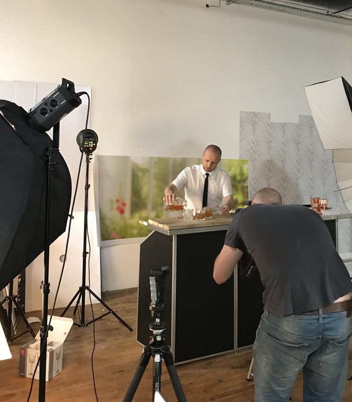 With a pre-event visit to the barbers and a crisp ironed shirt, we were ready for our day behind the camera. In full cocktail bartender mode, we produced a number of cocktails and drinks which have now featured in the brand’s brochures and online marketing campaigns.